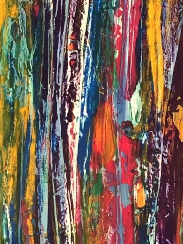 Art that is created by allowing a feeling to become synonymous with the application of paint. Basic colors are chosen intuitively as the piece evolves and the application an emotional reaction, rather than a premeditated thought.